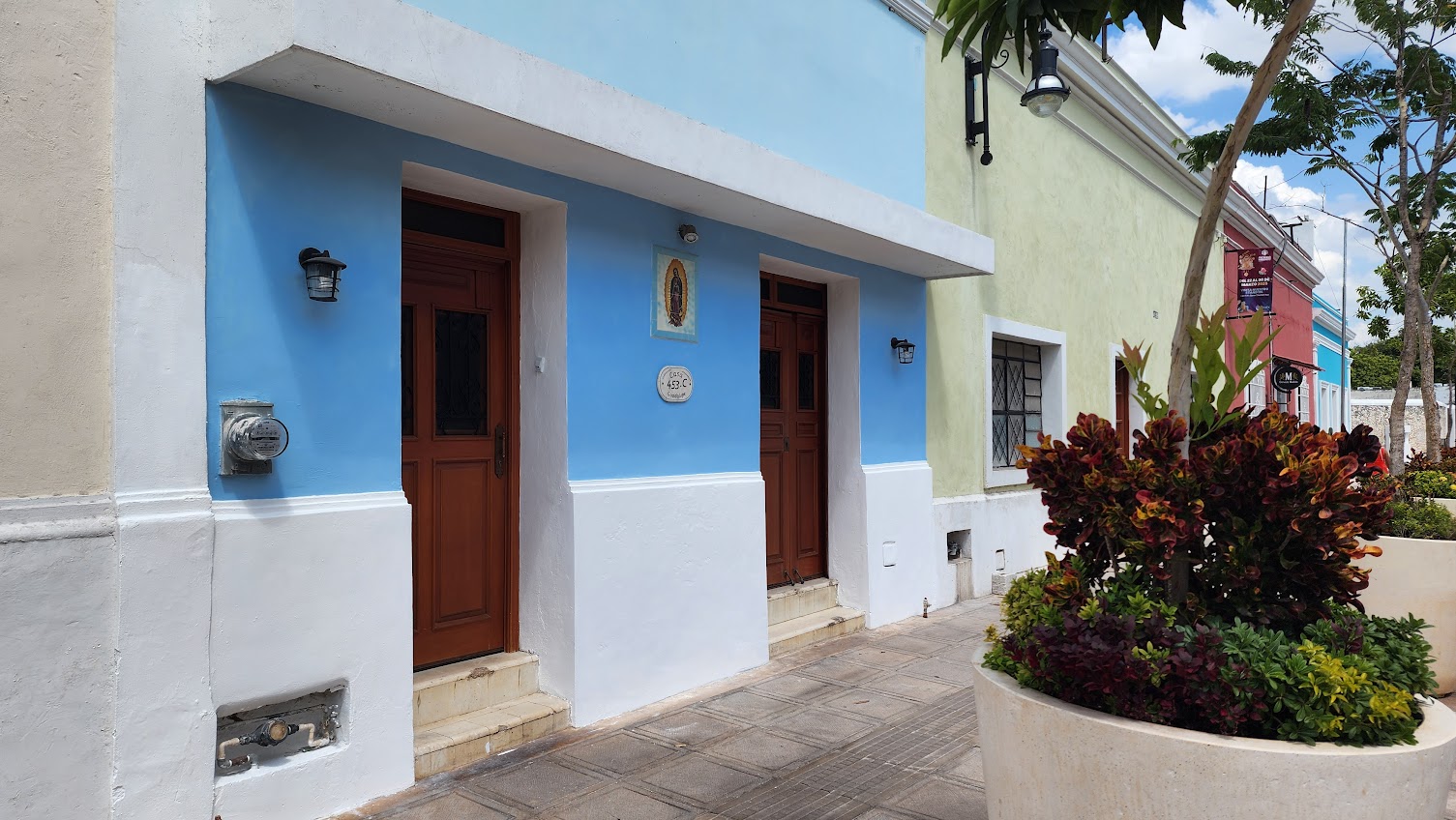 Explanation: Casa Guadalupe is located at 47th Street (calle 47) at #453-C "por 50 y 52" (between calles 50 and 52) - this is part of the address! - in the "Céntro Histórico" district - also part of the address!